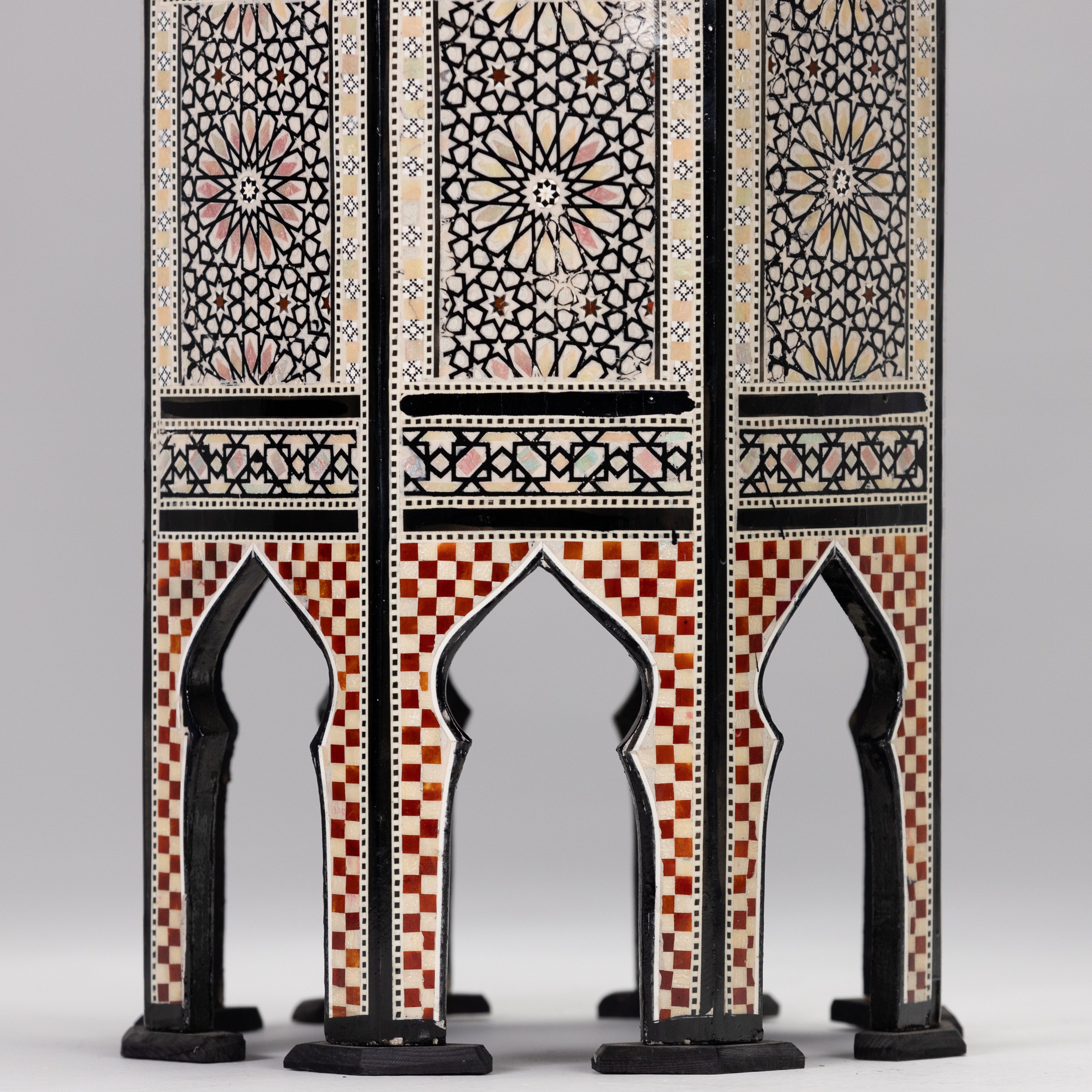 Discover the allure of Moroccan craftsmanship with the Elegant Marrakech Inlay Side Table. This piece captures the essence of Middle Eastern elegance with its detailed mosaic inlay and geometric patterns, set in a striking hexagonal design. The rich color palette and traditional motifs are complemented by the table's arching base, reflecting the iconic architecture of Marrakech. Perfect for adding a statement of sophistication and cultural charm to any space, this side table is both a functional furnishing and a piece of art that invites conversation and admiration.